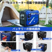 【セルスターター搭載で快適始動】独自に開発したセルスターター機能を備え、誰でもワンプッシュで簡単にエンジンを始動することができます。さらに、付属のリモコンを使うと、遠く離れた場所からでも発電機のオンオフを手軽に操作が可能です。また、セルスターター用バッテリーの残量がゼロになる時はリコイルスターターでエンジンをかけさせます。リコイルスターターも引き荷重を低減した設計を採用するので驚くほど軽く引けます。