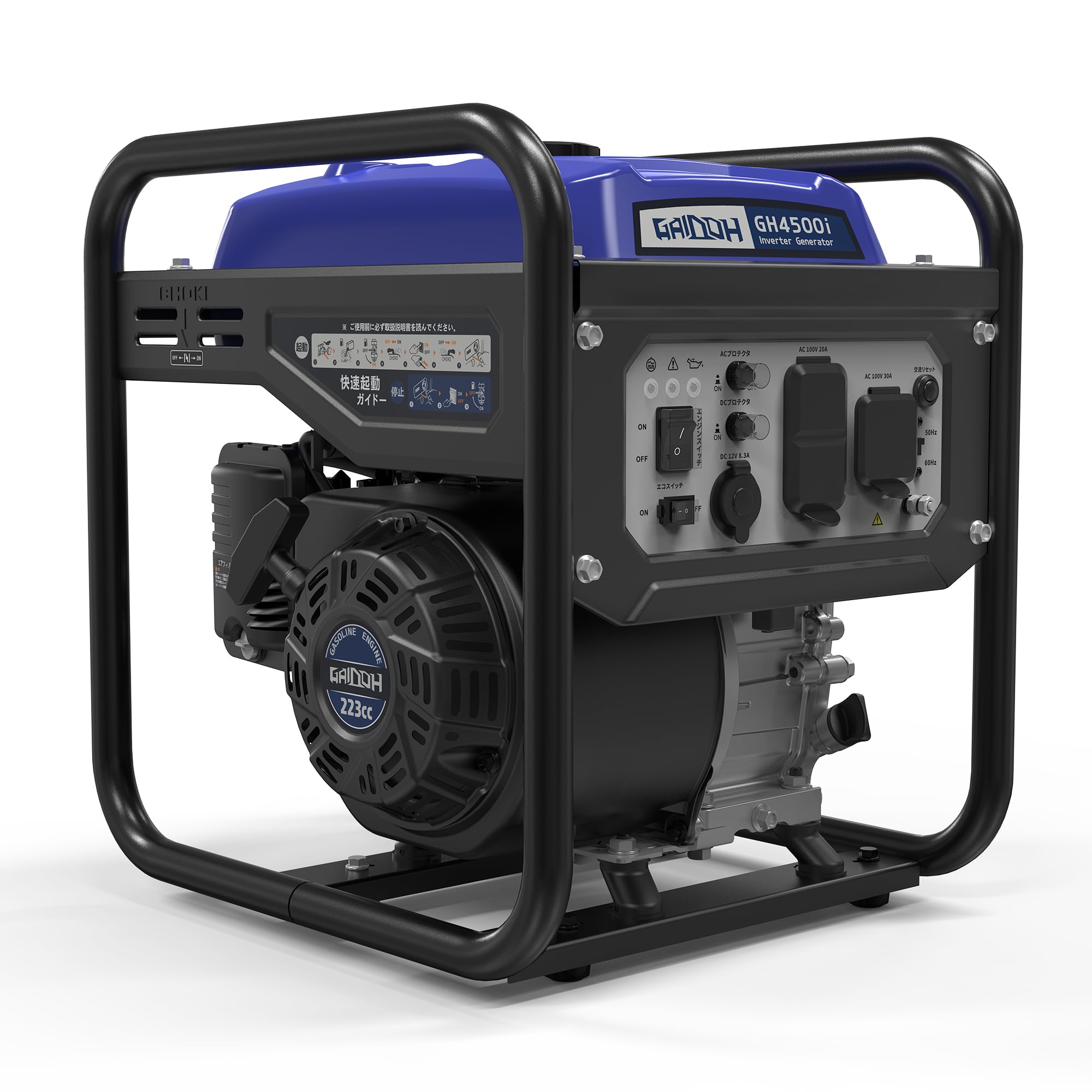 インバーター発電機 GH4500i 定格出力4.0kVA オープン型 ガソリン発電機 7.5L大型燃料タンク搭載 正弦波 50Hz/60Hz切替 低騒音 過負荷保護 オイル不足保護 長時間連続運転 キャンプ DIY 移動販売 イベント 建設作業 災害時に大活躍